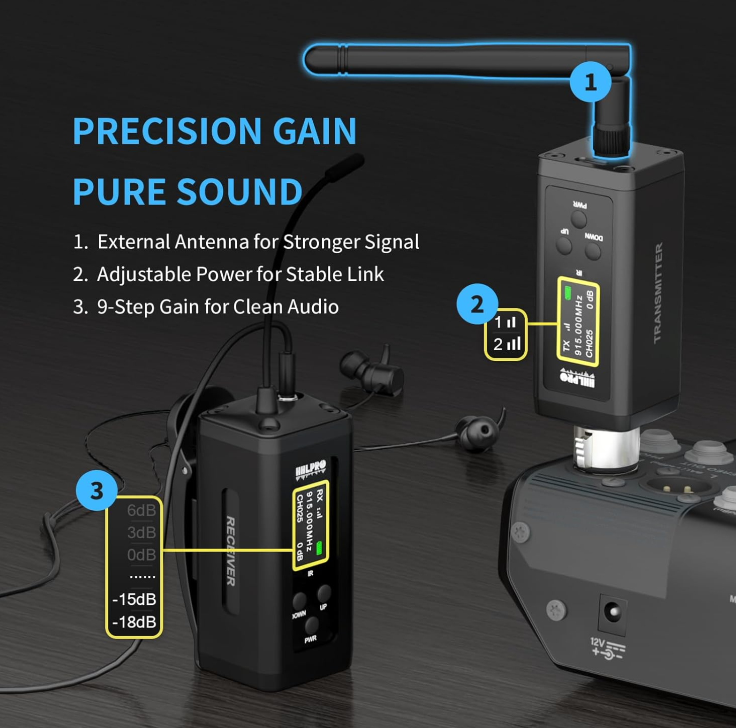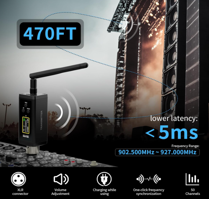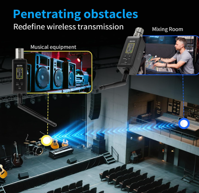 UHF Wireless XLR Transmitter and Receiver with Dual Antennas, 470ft Range, Auto Channel Scanning, Plug-on Wireless Mic Adapter for Audio Mixer, Sound Field Test, Acoustic Measurement, F30