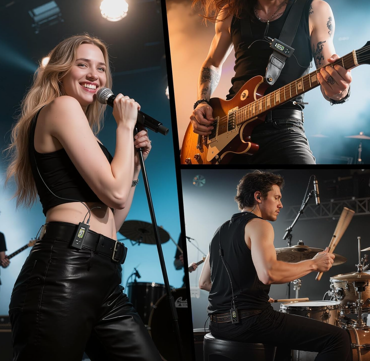 UHF Wireless in Ear Monitor System, 260 FT Range, Low Latency IEM System with 26 Channels, Dual Volume Control, Auto Pairing, Beltpack Transmitter & Receiver for Musicians, Band Rehearsal, F10