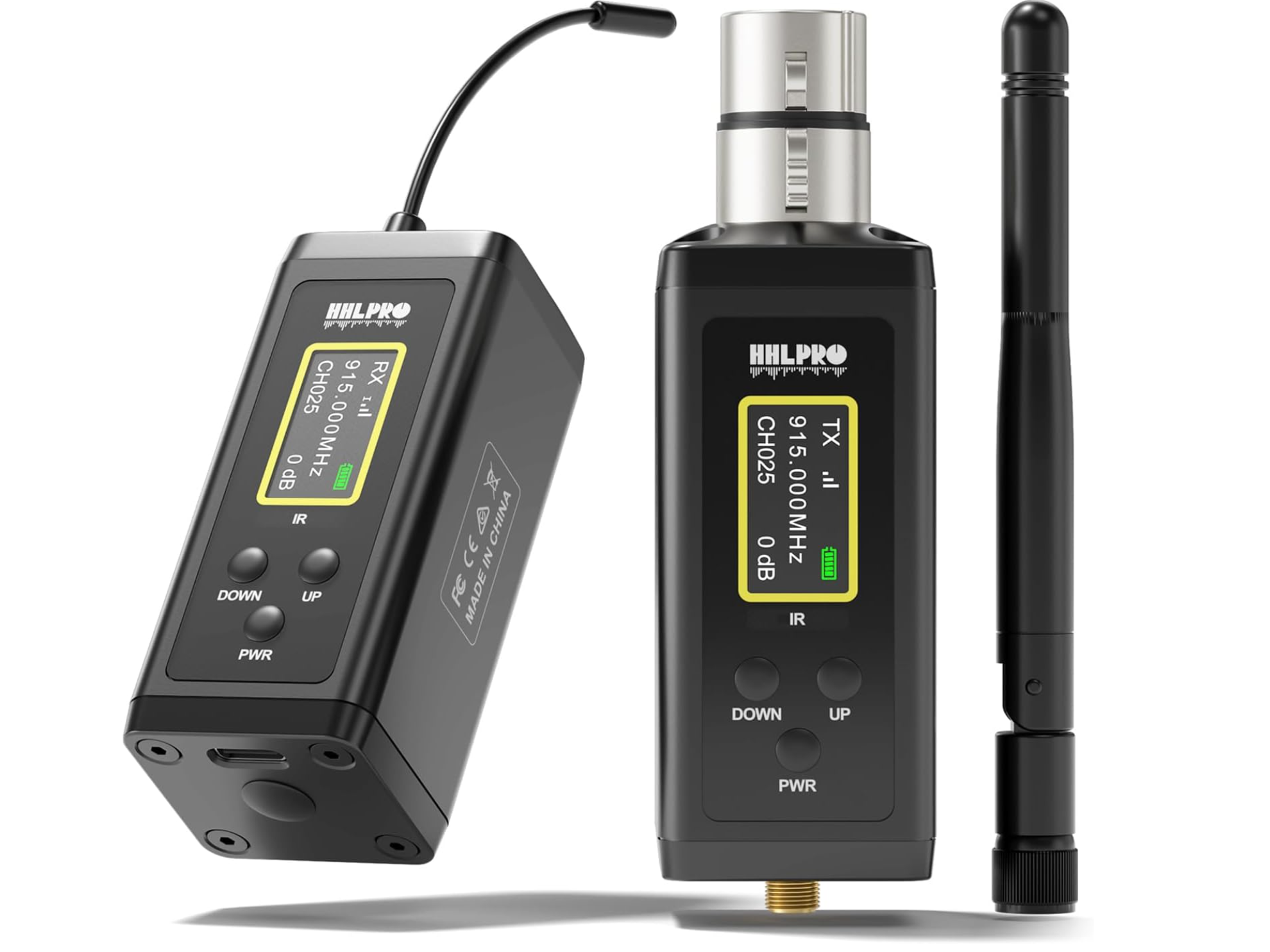 UHF Wireless XLR Transmitter and Receiver, 150 ft Range, Plug-on Wireless Microphone Adapter for Dynamic & Condenser Mic, Auto Channel Scanning, Compatible with Audio Mixer, PA System, F20